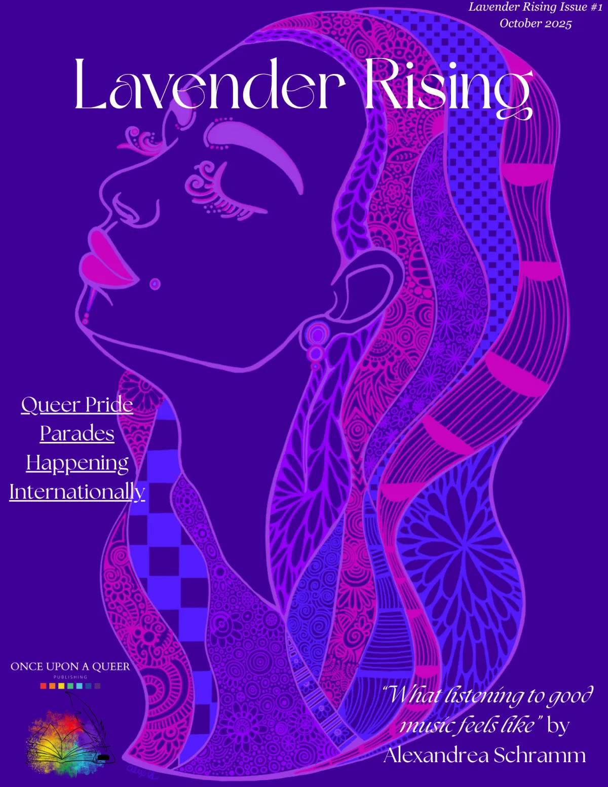 Lavender Rising is the monthly magazine from Once Upon A Queer Publishing, created to spotlight the voices, visions, and artistry of the LGBTQ+ community. Every issue brings together short stories, poems, essays, and artwork that celebrate queer creativity in all its forms—bold, vulnerable, funny, defiant, and unapologetically authentic.
